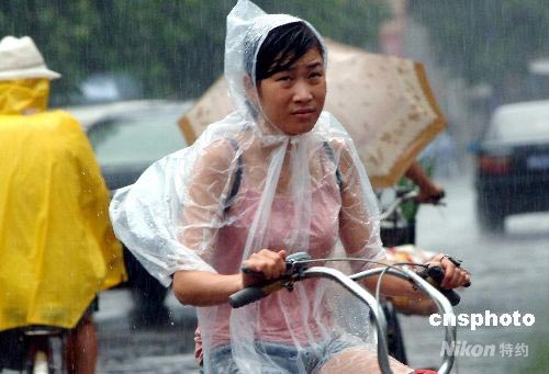 7月28日,福州一名騎單車(chē)的市民冒著大雨,艱難前行在上班途中。福建省氣象臺(tái)預(yù)計(jì)強(qiáng)臺(tái)風(fēng)“鳳凰”可能于28日上半夜在福建連江到廈門(mén)之間沿海再次登陸。中新社發(fā) 劉可耕 攝