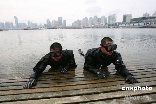暑期,青島邊防支隊駐奧帆中心的特勤官兵在奧運(yùn)會帆船比賽場地進(jìn)行適應(yīng)性潛水訓(xùn)練,在貼近實(shí)戰(zhàn)狀態(tài)下提高隊員處置突發(fā)事件等能力。第29屆奧運(yùn)會帆船帆板比賽將于2008年8月9日至23日在青島國際帆船中心及周邊水域舉行。 中新社發(fā) 王瑤 攝