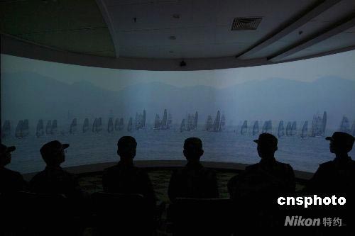 北京奧運(yùn)會(huì)開幕日益臨近,承擔(dān)奧帆賽安保任務(wù)的青島邊防支隊(duì)官兵利用值勤訓(xùn)練間隙參觀奧帆中心展館,了解奧運(yùn)會(huì)及奧帆賽的相關(guān)知識(shí)。第29屆奧運(yùn)會(huì)帆船帆板比賽將于2008年8月9日至23日在青島國際帆船中心及周邊水域舉行。 中新社發(fā) 王瑤 攝