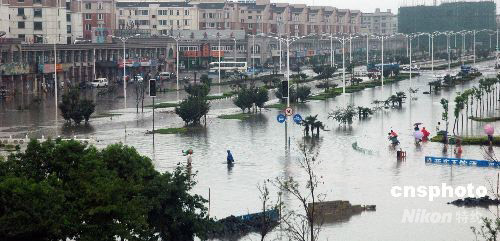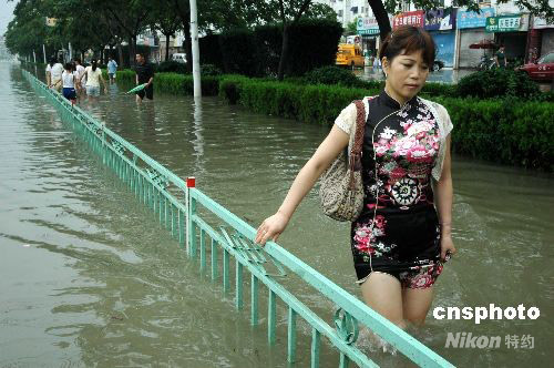 2008年7月31日20時(shí)起,受今年第8號臺風(fēng) “鳳凰”外圍的云系和風(fēng)力影響,“鳳凰”雨襲擊安徽巢湖市。至8月1日15時(shí),“鳳凰”雨狂襲安徽巢湖市城區(qū),降雨量已超過240mm以上,造成市內(nèi)多處低洼地段發(fā)生嚴(yán)重內(nèi)澇,部分街道成了一片汪洋,大部分路段被水淹沒,進(jìn)入市區(qū)的高速路口因積水過深臨時(shí)封閉,給群眾出行和生活帶來了很大影響。此次長時(shí)間的強(qiáng)降水,給該市城區(qū)防洪排水帶來壓力。中新社發(fā) 徐振華 攝