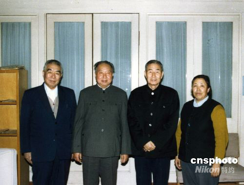 圖為1988年4月,華國鋒和夫人在家中會見抗日戰(zhàn)爭時(shí)期在一起工作過的老戰(zhàn)友。