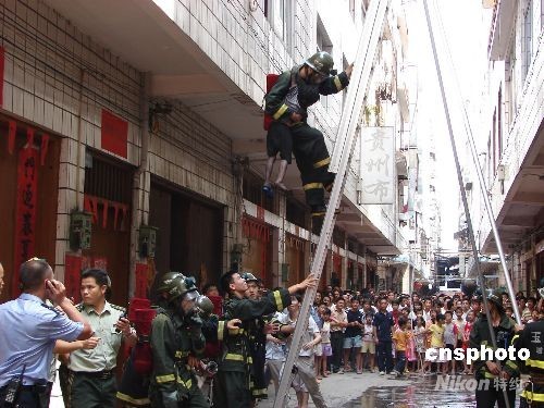 圖為消防官兵救出被困兒童。中新社發(fā) 張希友 攝
