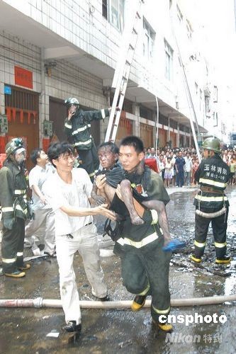 圖為消防官兵救出被困兒童并送往醫(yī)院救治。中新社發(fā) 易明祥 攝