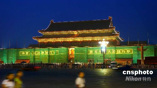 8月28日晚,粉刷中的北京天安門城樓在夜幕下別樣美麗。近日為迎接北京殘奧會(huì)和“十一”國慶節(jié)到來,天安門城樓開始加裝圍擋,進(jìn)行粉刷施工。據(jù)悉今年粉刷工作將在殘奧會(huì)前完工。中新社發(fā) 張愛東 攝