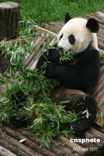 圖:四川臥龍大熊貓美靈南京過生日