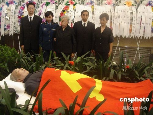 8月31日上午,原中共中央主席華國(guó)鋒遺體告別儀式在北京八寶山革命公墓舉行。華國(guó)鋒因病醫(yī)治無(wú)效,于8月20日12時(shí)50分在北京逝世,享年87歲。圖為華國(guó)鋒夫人韓芝俊(中)率子女在告別儀式上。中新社發(fā) 韓凱 攝