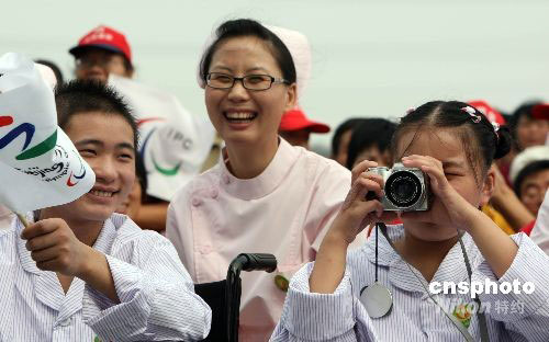 圖:汶川地震災(zāi)區(qū)兒童上海喜迎殘奧會(huì)火炬