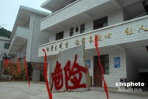9月1日,受“8·30”地震余震影響,四川省攀枝花市決定所有中小學(xué)開學(xué)時(shí)間推遲一周,將于9月8日開學(xué)。圖為攀枝花市鹽邊縣和愛鄉(xiāng)中學(xué)一棟教學(xué)樓在地震中因受損嚴(yán)重,拉起紅色警戒線。中新社發(fā) 石雨 攝