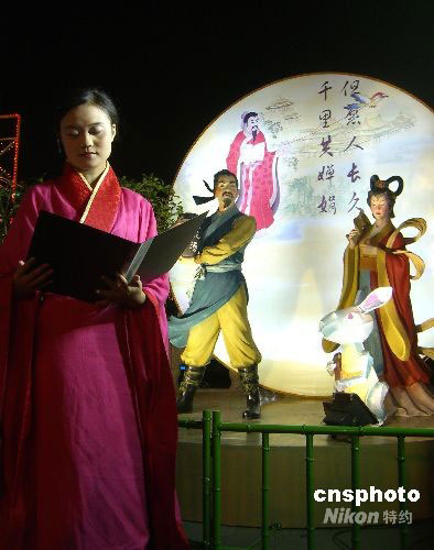 9月12日,一年一度中秋賽詩會在上海老城隍再度上演,手持折扇,身著漢服,搖頭晃腦地吟誦自己所做的詩作,回歸傳統(tǒng)的中秋賽詩會映著中秋圓月,吸引大量滬上大學(xué)生參與其中。中新社發(fā) 李佳佳 攝