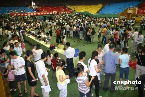 9月20日,南京市兒童醫(yī)院“問題奶粉”嬰幼兒專病門診搬至南京五臺山體育館,以便對食用“問題奶粉”的嬰幼兒篩查和診治。連日來,前來篩查的嬰幼兒數(shù)量急劇增加,僅9月19日就有2500多名嬰幼兒前來篩查。南京地區(qū)其他定點篩查醫(yī)療機構(gòu)照常工作。中新社發(fā) 阿董 攝