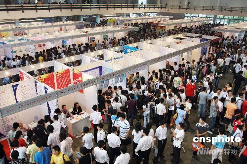 9月21日,北京奧運(yùn)會(huì)后首場(chǎng)大型綜合招聘會(huì)在中國(guó)國(guó)際展覽中心火爆開展,截至上午,招聘會(huì)已吸引了近2萬名求職者。此次招聘會(huì)是第29屆“共創(chuàng)未來”人才招聘會(huì),近600家用人單位提供了5000余個(gè)職位,招聘會(huì)將會(huì)持續(xù)到22日下午4時(shí),預(yù)計(jì)兩天內(nèi)將至少迎來近10萬名求職者。中新社發(fā) 鄭雄增 攝