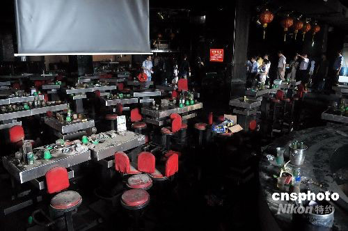 9月20日晚發(fā)生在深圳龍崗舞王俱樂(lè)部特大火災(zāi)事故已致40多人死亡,火災(zāi)事故因舞王俱樂(lè)部大廳演員表演施放煙火至天花板著火斷電所致,當(dāng)晚該俱樂(lè)部?jī)?nèi)約有近千人,事故亡者多為濃煙煙熏、踩踏致死。中新社發(fā) 陳文 攝