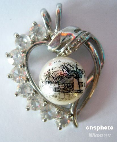 9月21日,郭克杰在珍珠上雕刻的微雕作品《拙政園》。當(dāng)日,蘇州民間藝人、微雕師郭克杰花費(fèi)近一個(gè)月的時(shí)間創(chuàng)作出的珍珠微雕作品“蘇州拙政園”亮相。這顆直徑約一厘米的珍珠上的精美圖案令人嘖嘖稱奇。中新社發(fā) 李俊鋒 攝