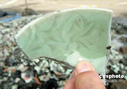 9月下旬,記者來到河下古鎮(zhèn)城河水道開挖工地現(xiàn)場,看到大量同種青瓷碎片裸露在距地表3米多深的河底,有一些已被挖掘機(jī)抓到地面臨時隔離起來。區(qū)有關(guān)部門已著手制訂考古方案,并對發(fā)掘現(xiàn)場落實了有效的保護(hù)措施。中新社發(fā) 李正林 攝