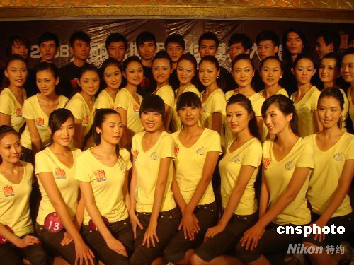 9月23日,入圍2008年世界最佳模特大賽中國區(qū)總決賽的50名男女選手,在天津與媒體見面。這些選手來自北京、天津、山東等20多個省、市、自治區(qū),其中女選手30名,男選手20名。中國區(qū)總決賽將于9月28日在天津東麗湖景區(qū)舉行。中新社發(fā) 孫志民 攝