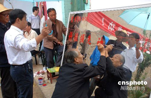 9月25日下午, 在山西運(yùn)城市鹽湖區(qū)安邑街道辦事處楊家卓村景海鵬的老家,前來(lái)到賀喜的親戚朋友和當(dāng)?shù)卣斫j(luò)繹不絕。中新社發(fā) 張雷杰 攝
