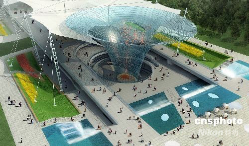 2010年上海世博會中央景觀道路“世博軸”進入全面施工階段,圖為首次公布的“世博軸”主出入口“陽光谷”造型效果。據(jù)介紹,“世博軸”的一端也是上海世博園區(qū)的主出入口,整個“世博軸”在入口及沿途共設(shè)6個巨型圓錐狀“陽光谷”。“陽光谷”采用鋼結(jié)構(gòu),其功能是讓自然光透過透明“圓錐”傾瀉入地下,滿足部分地下空間的采光,實現(xiàn)節(jié)能環(huán)保。 中新社發(fā) 世博局 攝