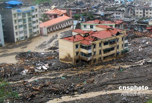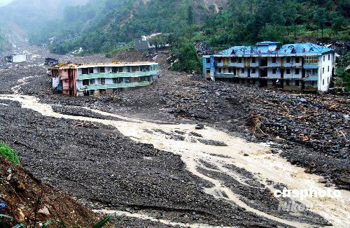 9月27日,四川北川泥石流覆蓋區(qū),老縣城很多房屋都已被泥石流埋在地下。截止9月26日早上7點,已造成16人死亡,48人失蹤,部分地區(qū)交通、電力、通訊中斷。 進入北川縣城的必經(jīng)路段,“三道拐”變成兩道拐,幾道細流從上而下匯聚成一條“小溪”直瀉而下,曾經(jīng)深深的山溝已被泥石填平,成了一個開闊的河灘。供生者紀念的北川老縣城地震遺址,被兩條從山谷傾瀉而下的泥石流掩埋大半。據(jù)悉,最深處的污泥達40米以上。 同時被添平的還有以前這條溝里錯落有致的建筑。現(xiàn)在有的只剩下一個屋頂,或者兩三層顯露在外面。整個北川老城區(qū)大部分被泥石填埋在地下。當?shù)厝私榻B,最上面的房子最多的埋了四五層,大部份地震中未倒的建筑都被埋了兩到三層。中新社發(fā) 胥輝 攝