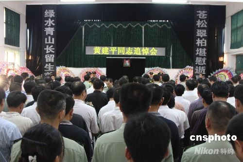 9月28日,廣西貴港市數(shù)千軍民在殯儀館追悼消防員黃建平。黃建平9月25日在營(yíng)救被洪水圍困的民眾時(shí),不幸被湍急的洪水卷走并犧牲。中新社發(fā) 覃楚明 攝