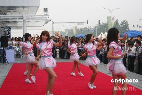 10月2日,奧運寶貝表演啦啦操。“十一”黃金周期間,北京奧林匹克公園內(nèi),曾在“鳥巢”、水立方為2008奧運會比賽表演的三支奧運寶貝,為中外游客進(jìn)行啦啦操表演,為節(jié)日的奧林匹克公園營造奧運氣氛。中新社發(fā) 陳曉根 攝