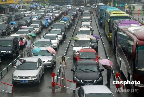 2008年10月4日消息,海南受今年第17號(hào)熱帶風(fēng)暴“海高斯”影響開(kāi)始漸弱,瓊州海峽不同抗風(fēng)等級(jí)的船舶陸續(xù)復(fù)航。來(lái)自廣東、廣西、云南、福建等省的自駕車(chē)游客結(jié)束黃金周休閑游,開(kāi)始返程過(guò)海,在?谛阌⒏鄣群虺舜^(guò)海的自駕車(chē)排成了長(zhǎng)龍。中新社發(fā) 善平 攝
