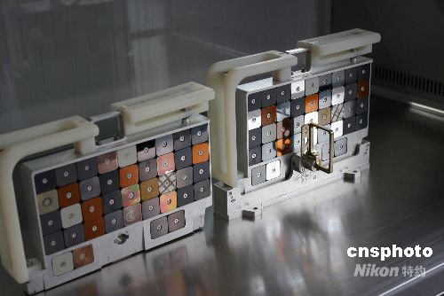 10月6日,中科院蘭州化物所科研人員將暴露于太空環(huán)境的空間材料試驗(yàn)樣品與地面模擬空間環(huán)境試驗(yàn)的樣品進(jìn)行對(duì)比。專家們希望通過試驗(yàn),能夠找出科學(xué)、合理、準(zhǔn)確的實(shí)驗(yàn)參數(shù),建立相關(guān)實(shí)驗(yàn)規(guī)范,最終通過地面模擬裝置,能夠知曉太空會(huì)發(fā)生怎樣的變化,指導(dǎo)發(fā)展高性能空間潤滑材料。中新社發(fā) 殷春永 攝