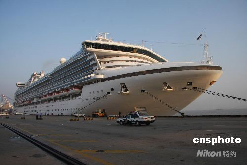 10月9日,百慕大籍豪華郵輪“鉆石公主”號(DIAMOND PRINCESS)訪滬!般@石公主”號系世界著名郵輪公司——美國嘉年華郵集團(tuán)旗下公主郵輪公司的一艘超級豪華郵輪,是“公主號”船隊麾下體積最龐大、設(shè)施最完善的頂級豪華郵輪之一。該郵輪于二零零四年在日本長崎建成下水,被稱作“海上移動的超五星級大酒店”!般@石公主”號將在晚上二十一時離滬前往日本。中新社發(fā) 梁林光 攝