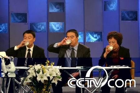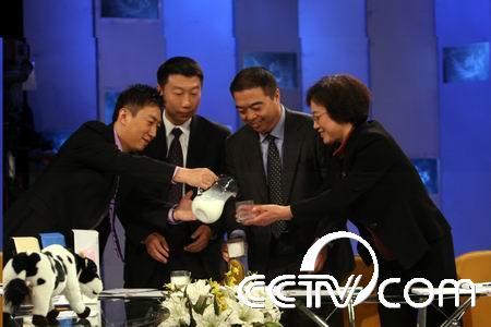 主持人現(xiàn)場(chǎng)請(qǐng)三位老總品嘗牛奶
