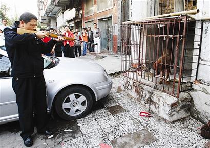 12日下午,武漢硚口區(qū)崇仁路一理發(fā)店老板圈養(yǎng)的一條藏獒,逃出鐵籠咬傷3人。因擔心該藏獒再次逃出傷人,民警開槍將其擊斃。