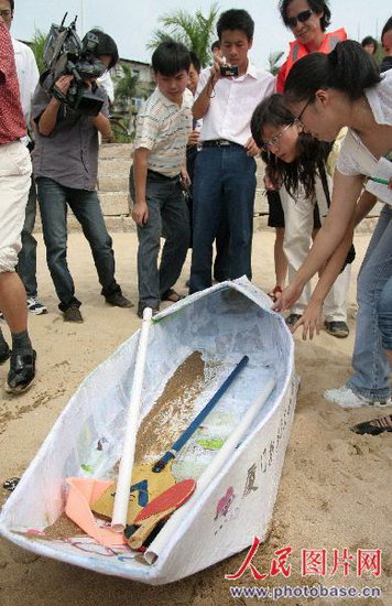 2008年10月13日上午,“紙船載人漂流第一人”朱亞林搭乘著自己親手打造的紙船下水開始試航。在使用乒乓球拍當做雙槳航行大約五百米后,朱亞林順利靠岸,完成試航。