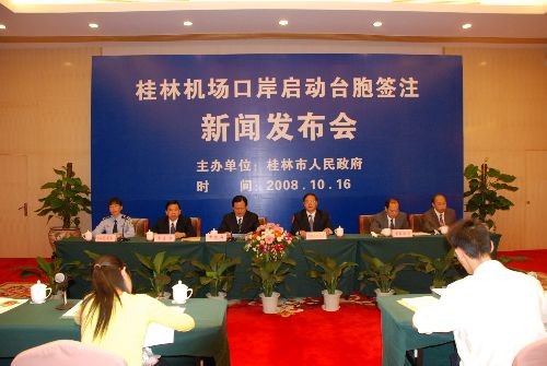 十月十六日,廣西桂林市人民政府在此間召開啟動機場口岸臺胞簽注新聞發(fā)布會,宣布從十月二十日起正式啟動兩江國際機場口岸臺胞簽注點,為臺灣同胞進出桂林提供十分快捷便利的服務(wù)。中新社發(fā) 周利朔 攝