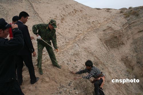 拜城縣野外旅游探險愛好者、拜城縣國資局副局長徐作寬等聞訊后,立即聯(lián)系其他兩位“驢友”喬軍和王新疆,并臨時買來150米救援繩索,火速趕到現(xiàn)場,與先期抵達(dá)的救援人員一道勘察地形制定出了救援方案。