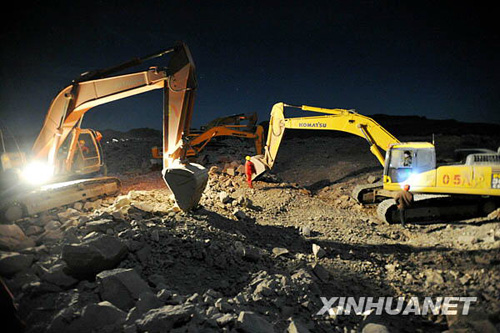 圖為10月17日凌晨,搜救機(jī)械在事故現(xiàn)場進(jìn)行搜救。新華社記者 王鵬 攝