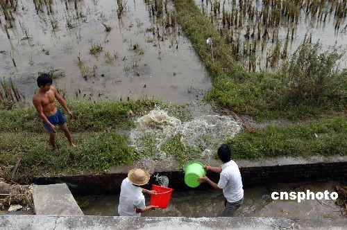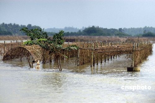 2008年10月17日,瓊海市嘉積鎮(zhèn)已被洪水浸泡6天5夜的瓜菜已全部枯死。海南持續(xù)強(qiáng)降雨目前已停止,但瓊海萬泉河畔洪水消退十分緩慢,低洼地帶的農(nóng)田已經(jīng)浸泡了6天5夜,泡在水里的香蕉等瓜果作物損失嚴(yán)重。目前瓊海市群眾在農(nóng)技人員幫助下,采取各種措施抗災(zāi)保苗。當(dāng)?shù)厝罕娬f洪水如此長(zhǎng)時(shí)間不退歷史上很少見。中新社發(fā) 蒙鐘德 攝
