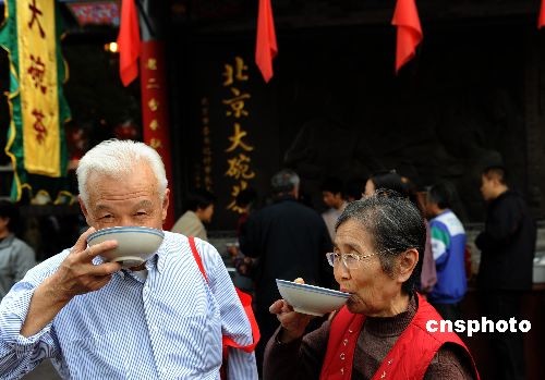 10月20日,路人在北京前門(mén)老舍茶館前購(gòu)買(mǎi)兩分錢(qián)一碗的大碗茶暢飲解渴。當(dāng)日,文化部授予老舍茶館“國(guó)家文化產(chǎn)業(yè)示范基地”在店內(nèi)揭牌。1979年,當(dāng)時(shí)宣武區(qū)大柵欄街道辦事處干部尹盛喜為了解決街道待業(yè)知青的就業(yè)問(wèn)題,利用改革開(kāi)放后的市場(chǎng)機(jī)制,帶領(lǐng)幾名待業(yè)知青在前門(mén)箭樓腳下支起茶攤,靠賣(mài)每碗二分錢(qián)的“大碗茶”而發(fā)展起來(lái),1988年先后創(chuàng)建北京大碗茶商貿(mào)公司和改革開(kāi)放后京城第一家京味茶館——老舍茶館。中新社發(fā) 廖攀 攝