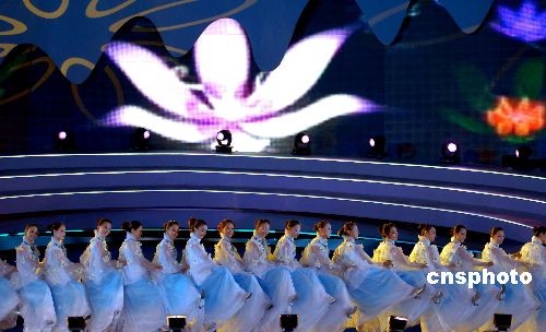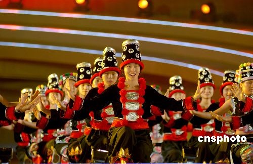 10月22日,廣西“南寧國際民歌藝術節(jié)開幕式晚會——大地飛歌·2008”在南寧民歌廣場上演。原生態(tài)的《壯族大歌》、《苗族大歌》、《侗族大歌》、《瑤族大歌》,經(jīng)過重新編排后更具魅力。除了廣西本地民歌以外,還有來自東盟各國的經(jīng)典民歌激情上演。整個舞臺流光溢彩,聲色動人。中新社發(fā) 彭寰 攝