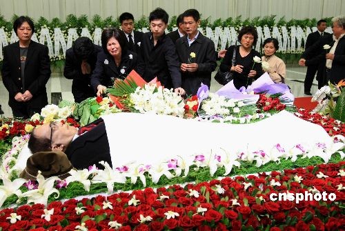 10月26日,中國著名導演謝晉追悼儀式在上海龍華殯儀館舉行,社會各界人士自發(fā)到場為一代電影大師送行。謝晉導演于10月18日凌晨在浙江上虞去世,享年85歲。他生于1923年,浙江上虞市人,主要代表作有《女籃5號》、《紅色娘子軍》、《牧馬人》、《天云山傳奇》、《鴉片戰(zhàn)爭》、《芙蓉鎮(zhèn)》等。中新社發(fā) 湯彥俊 攝