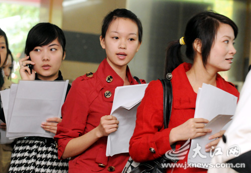 10月26日,首次來(lái)江西招聘國(guó)際航空小姐的新加坡國(guó)際航空互聯(lián)會(huì)對(duì)400余名女孩進(jìn)行了入圍面試。記者在現(xiàn)場(chǎng)看到,進(jìn)入面試的應(yīng)聘者必須用英文填寫個(gè)人簡(jiǎn)歷,在面試過(guò)程中,要全程用英語(yǔ)交流。一位來(lái)自南昌航空大學(xué)的大四學(xué)生告訴記者,她們此次有6名同學(xué)前來(lái)面試,但進(jìn)入復(fù)試的只有兩人,其余四人都卡在英語(yǔ)關(guān)和反應(yīng)能力上。