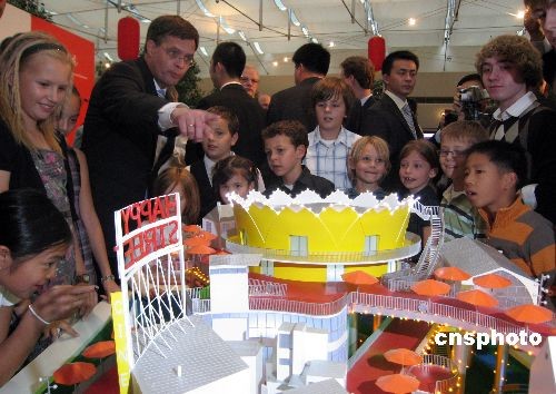 10月28日,荷蘭首相鮑肯內(nèi)德(左三)在上海為中國2010年上海世博會荷蘭館“快樂街”的模型揭幕,并向在場的荷蘭兒童講解荷蘭館的設(shè)計理念。荷蘭是全球首個向上海世博會組織者遞交參展展館規(guī)劃設(shè)計方案的國家,2007年11月荷蘭正式簽約參展上海世博會。28日,荷蘭政府代表還與上海世博局簽署了首份“網(wǎng)上世博會”項目合同。中新社發(fā) 許曉青 攝