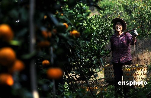 十月底,江西省安遠(yuǎn)縣的臍橙園里,果農(nóng)包裝豐收的臍橙。全國(guó)即將迎來(lái)柑橘類產(chǎn)品上市高峰。目前,中國(guó)各級(jí)農(nóng)業(yè)部門已有效控制果樹蛆蟲災(zāi)害,并為消費(fèi)者推薦優(yōu)質(zhì)柑橘果品。中新社發(fā) 廖攀 攝