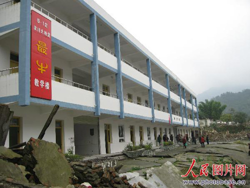 2008年10月,一批來自成都市的游客正在“5·12”汶川大地震“最!苯虒W(xué)樓地震遺跡內(nèi)參觀。據(jù)悉,“5·12”汶川大地震發(fā)生后,一條地震斷裂帶剛好從四川省彭州市白鹿鎮(zhèn)中心校校區(qū)內(nèi)穿過,從而導(dǎo)致一棟新建教學(xué)樓被整體抬高近3米,樓體依然屹立原地不倒;而在其旁邊的教師宿舍完全垮塌,舊教學(xué)樓、辦公樓均成危房,與“長高”的新教學(xué)樓相對10多米遠(yuǎn)、且在同一時(shí)間施工建設(shè)、同一地面高度的一棟四層新教學(xué)樓,成了鮮明的參照物。會“長高”的教學(xué)樓便被當(dāng)?shù)厝朔Q作是:“5.12”汶川特大地震“最!钡慕虒W(xué)樓。彭州市相關(guān)部門特將此校教學(xué)樓地震遺跡作為旅游資源開發(fā)利用。目前,每天都有二三百人的游客來此觀光“最!钡慕虒W(xué)樓地震遺跡。