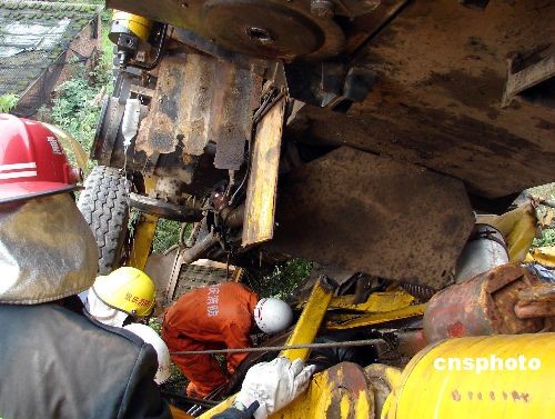 圖:渝黔高速重型吊車爆胎側(cè)翻 致1死1傷