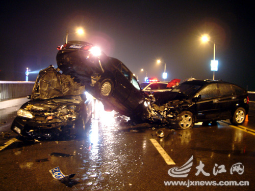 目擊者說(shuō),當(dāng)時(shí)他聽(tīng)見(jiàn)轟的一聲后,回頭看時(shí)這三輛車(chē)已經(jīng)撞到一起,中間那輛別克轎車(chē)屁股高高翹到另一輛奇瑞小轎車(chē)的車(chē)頂上。十幾分鐘后,3輛車(chē)上的傷者被120急救車(chē)送走。事發(fā)后,交警在南昌大橋的兩頭設(shè)立警戒,一些公交車(chē)乘客步行下橋。交警稱(chēng)事發(fā)時(shí)視線不好,車(chē)速很快,事故原因還在調(diào)查中。記者 徐彬