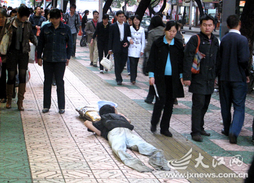 3日下午5時(shí)許,一個(gè)20出頭“高位截肢”的小伙艱難爬行在南昌市中山路人行道上,向路人訴說(shuō)不幸遭遇:“一場(chǎng)車禍奪走了父母的生命,我也因這場(chǎng)車禍高位截肢!币恍┖眯氖忻褚(jiàn)狀,紛紛慷慨解囊。傍晚6時(shí)30分許,“截肢”小伙爬進(jìn)了一條小巷內(nèi),另一男子提來(lái)了一大包衣服。這時(shí),“截肢”小伙突然站了起來(lái),換上一套時(shí)尚的休閑裝?吹接浾吲恼,兩人迅速消失。(文/圖劉虎記者歐陽(yáng)蘇敏)
