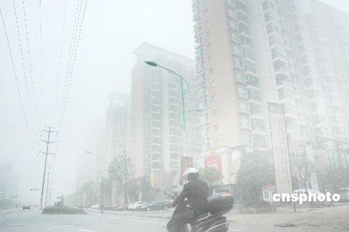 十一月六日清晨,一場(chǎng)大霧籠罩江西南昌,給行車(chē)和市民出行帶來(lái)一定的不便。據(jù)江西省氣象臺(tái)今晨發(fā)布的大霧黃色預(yù)警信號(hào):目前江西省南昌、撫州、贛州三地市已經(jīng)出現(xiàn)大霧天氣,局部還出現(xiàn)能見(jiàn)度小于二百米的濃霧,請(qǐng)駕駛員和市民出行注意交通安全。中新社發(fā) 段長(zhǎng)征 攝