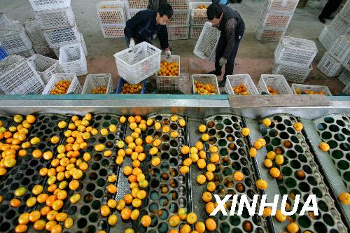 進(jìn)入11月以來(lái),全國(guó)四大柑橘帶之一的湖北省宜昌市柑橘銷售逐漸回暖,11月5日,宜昌市日銷售柑橘1.4萬(wàn)噸,接近日常銷售平均水平。據(jù)介紹,近年來(lái)宜昌市采取多種措施加大無(wú)公害柑橘基地建設(shè)力度,著力打造宜昌優(yōu)質(zhì)柑橘品牌。2008年宜昌市142萬(wàn)畝優(yōu)質(zhì)柑橘產(chǎn)量達(dá)到148萬(wàn)噸。新華社記者 郝同前 攝