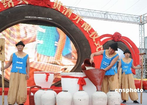 11月7日,2008中國紹興黃酒節(jié)在浙江紹興舉行。紹興是黃酒之鄉(xiāng),也是全球黃酒生產量最大的城市。目前全市有黃酒企業(yè)86家,年產量達到41.3萬噸、年銷售額33.2億元,分別占全國的17.2%和35.6%。紹興黃酒行業(yè)擁有7個中國馳名商標、4只中國名牌產品和6家中華老字號。今天展示的15家“紹興黃酒”冠名企業(yè),是其中的佼佼者,他們的總產量和銷售收入占據全市的90%。黃酒節(jié)期間,紹興將舉辦黃酒展覽會、黃酒開釀儀式,酒類趣味活動,黃酒品牌推廣文藝活動,黃酒品嘗活動以及院士紹興行和一系列經貿文化活動等。中新社發(fā) 袁云 攝