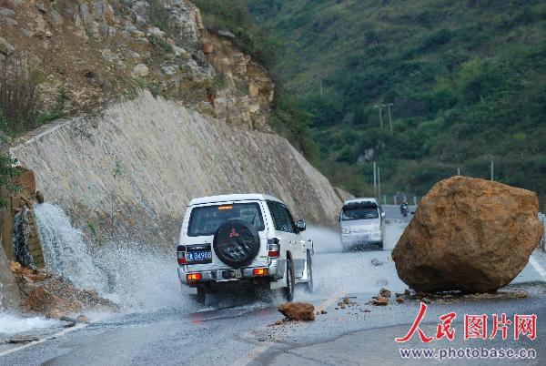 11月7日,貴州省黃平縣重安江鎮(zhèn)合家村凱(里)至施(秉)旅游公路上,一巨石山砸向公路,把正在路過的當(dāng)?shù)匾晃?3歲的男性村民砸死。事故原因是由于持續(xù)降雨,引發(fā)地質(zhì)災(zāi)害,山上巨石滾落造成的。(匿名)