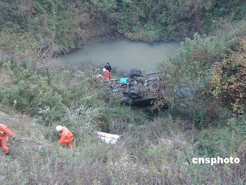 11月12日下午5時(shí)許,一輛從貴州省六盤水市駛往畢節(jié)地區(qū)威寧縣的貨車在102省道威寧縣境內(nèi)張家村一轉(zhuǎn)彎道突然失控,一頭將路邊的防護(hù)石墩撞垮,翻下50余米高的山谷,當(dāng)場造成2人受傷,1人遇難。中新社發(fā) 潘立遠(yuǎn) 攝