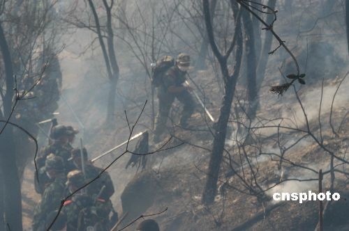 11月13日下午,武警官兵在廣東省珠海市板樟山南側(cè)山林撲救山火。當(dāng)日14時(shí)25分,珠海市板樟山南側(cè)山林突發(fā)山火,火勢兇猛,迅速向市內(nèi)居民區(qū)蔓延。接到火情命令后,武警廣東總隊(duì)珠海市支隊(duì)緊急出動(dòng)100名官兵,火速趕往現(xiàn)場,奮戰(zhàn)三小時(shí)成功將山火撲滅,搶救山林12畝。 中新社發(fā) 陸建東 攝